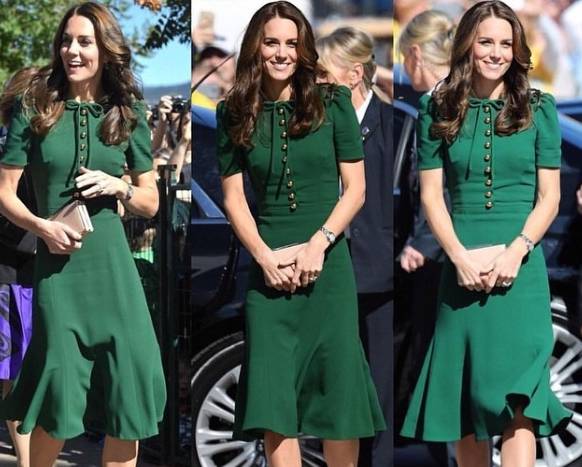 KELOWNA (CANADA) – Kate Middleton magrissima in D&G verde aderente FOTO. Dolce, dolce Kate. Di verde vestita la Duchessa è apparsa impeccabile come sempre. In occasione della tappa a Kelowna durante il quarto giorno del viaggio in Canada, Kate Middleton ha indossato un abitino verde a dir poco delizioso firmato Dolce & Gabbana: lungo fin sotto le ginocchia, impreziosito con dei bottoncini d’oro e fiocchetto al collo, l’abitino aderente calzava alla perfezione alla Duchessa ma non ha potuto fare a meno di mettere in risalto il suo fisico esile e asciutto, tanto che -come spesso è accaduto- non sono mancate le polemiche in merito ad una sua eccessiva magrezza. Cappottino Hobbs ton sur ton e decolleté color nude completavano il look.