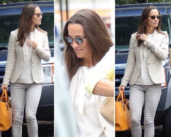LONDRA – Kate Middleton, sorella Pippa: casual chic e anello in vista FOTO. Glamour ed elegante Pippa Middleton che, da quando ha annunciato il matrimonio con il fidanzato James Matthews, sta dando il meglio di sé in quanto a look. Paparazzata per le vie di Londra insieme alla mamma Caroline in occasione di un pranzo per festeggiare il suo compleanno (Pippa ha compiuto 33 anni ieri 6 settembre 2016), Pippa ha sfoggiato un completo casual ma incredibilmente chic formato da giacca e pantaloni aderenti beige e camicetta ton sur ton. Scarpe con tacco appena accennato e, visibile a km di distanza, l’ormai inseparabile anello di fidanzamento che le ha regalato il fidanzato, finanziere multimiliardario molto in vista nella City di Londra.