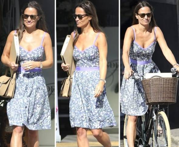 LONDRA – Kate Middleton, sorella Pippa chic: abito scollato in bici FOTO. Completino semplice e chic per Pippa Middleton che, da quando ha annunciato il matrimonio con il fidanzato James Matthews, sta dando davvero il meglio di sé in quanto a look. In giro per Londra alle prese con l’imminente matrimonio (non è stata ancora annunciata la data ma le nozze saranno celebrate probabilmente nel 2017), Pippa ha scelto una mise che non è passata inosservata: approfittando degli ultimi sprazzi di caldo, la sorella minore di Kate ha scelto un abitino floreale dal sapore estivo sui colori del viola. Un abitino firmato Tania Cashmere, scollato e con gonna a pieghe fin sotto il ginocchio, che ha messo in risalto il fisico atletico e slanciato di Pippa. Sandaletto estivo e, visibile a km di distanza, l’ormai inseparabile anello di fidanzamento che le ha regalato il futuro marito James: una meravigliosa creazione di diamanti di ispirazione art decò di 4 carati e del valore di 200 mila sterline. Che dire, la Duchessa di Cambridge deve essere proprio orgogliosa della sorella: entrambe, dopotutto, hanno ereditato da mamma Caroline un innato gusto nel vestire e sia Kate quanto Pippa lo dimostrano giorno per giorno, sfoggiando sempre dei look che mandano in visibilio le fan delle sorelle più famose d’Inghilterra.