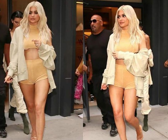 Kylie era presente alla sfilata del marchio Yeezy che suo cognato Kanye West ha organizzato in occasione della New York Fashion Week. Nelle foto pubblicate su Instagram, si vede Kylie che lascia il suo albergo per recarsi alla sfilata. La Jenner è in compagnia della sorella Kendall e indossa un top della Yeezy color camoscio con degli shorts e una felpa con zip aperta dello stesso colore.