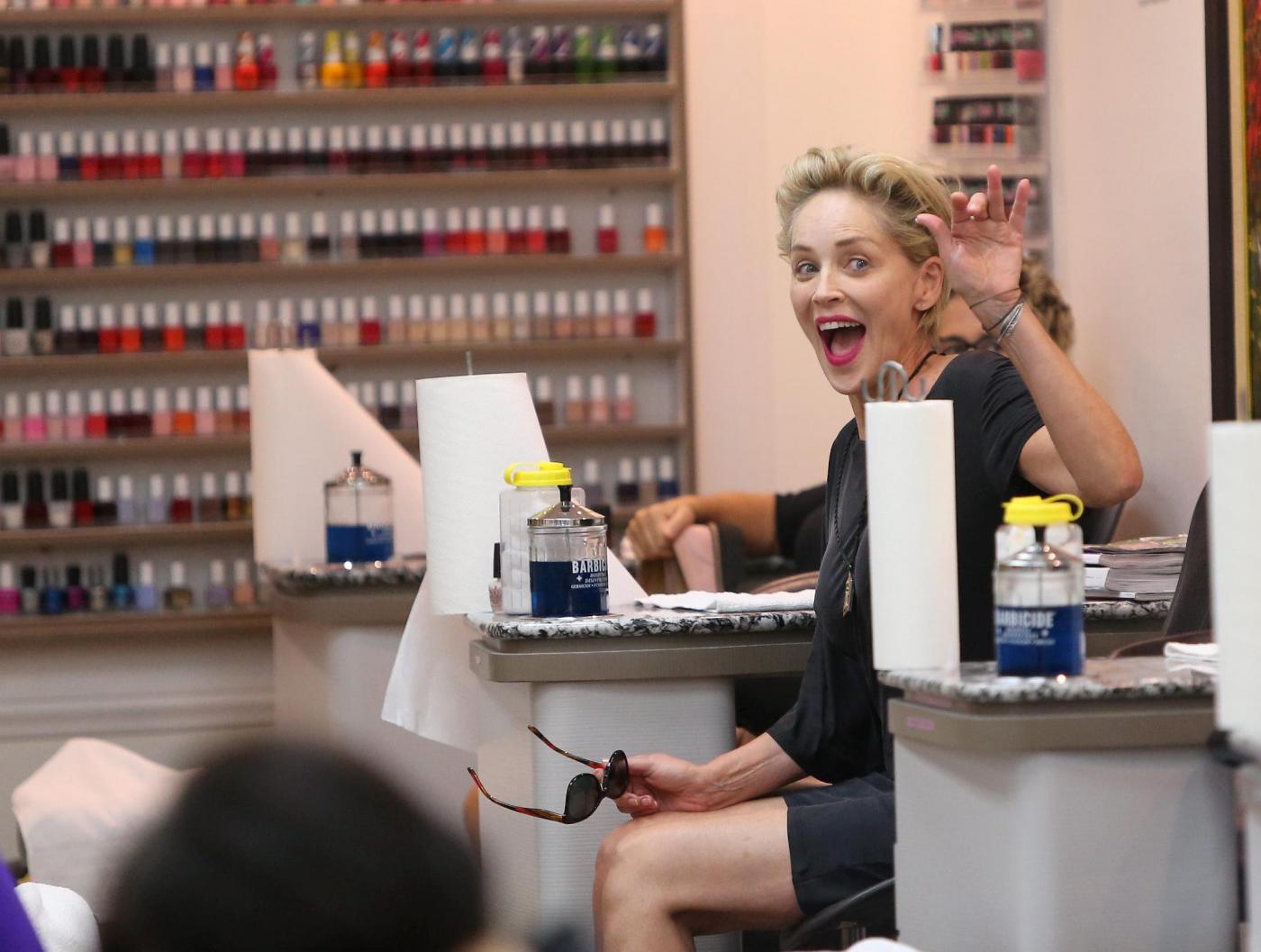 LOS ANGELES – Sharon Stone trascorre il pomeriggio in un salone di bellezza di Beverly Hills. Il paparazzo (le immagini sono state diffuse da LaPresse) la segue e riesce ad immortalarla mentre, senza troppo trucco, si sottopone a manicure e pedicure. Ai piedi, Sharon indossa delle (comode?) infradito.