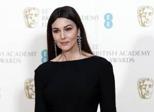 Actress Monica Bellucci poses backstage after presenting an award at the British Academy of Film and Arts (BAFTA) awards ceremony at the Royal Opera House in London February 8, 2015. REUTERS/Suzanne Plunkett (BRITAIN - Tags: ENTERTAINMENT)