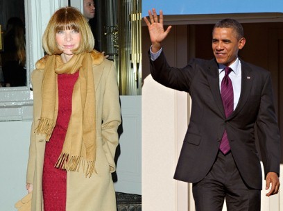 Già a febbraio a New York, poco prima della Fashion Week, Wintour e l’attrice Scarlett Johansson hanno presieduto una raccolta di fondi per il lancio della campagna del negozio online “Runway to win”, che vende sciarpe, maglie e braccialetti creati da 22 importanti stilisti per raccogliere fondi per la rielezione del primo presidente nero alla Casa Bianca.