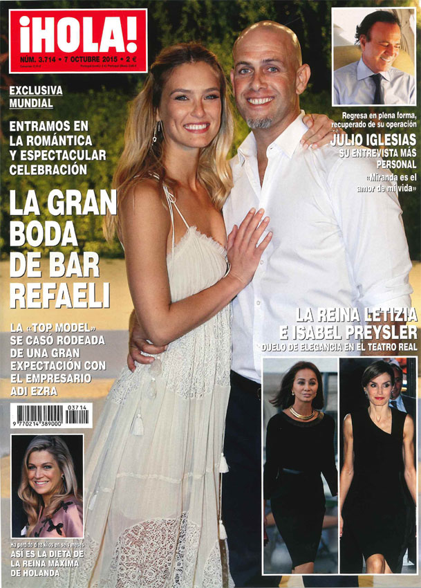 TEL AVIV – Bar Refaeli, prima foto delle nozze su Hola! La rivista spagnola ha pubblicato in esclusiva mondiale il primo scatto relativo al matrimonio della modella israeliana e del marito, Adi Ezra, che ha avuto luogo in Israele lo scorso 24 settembre.