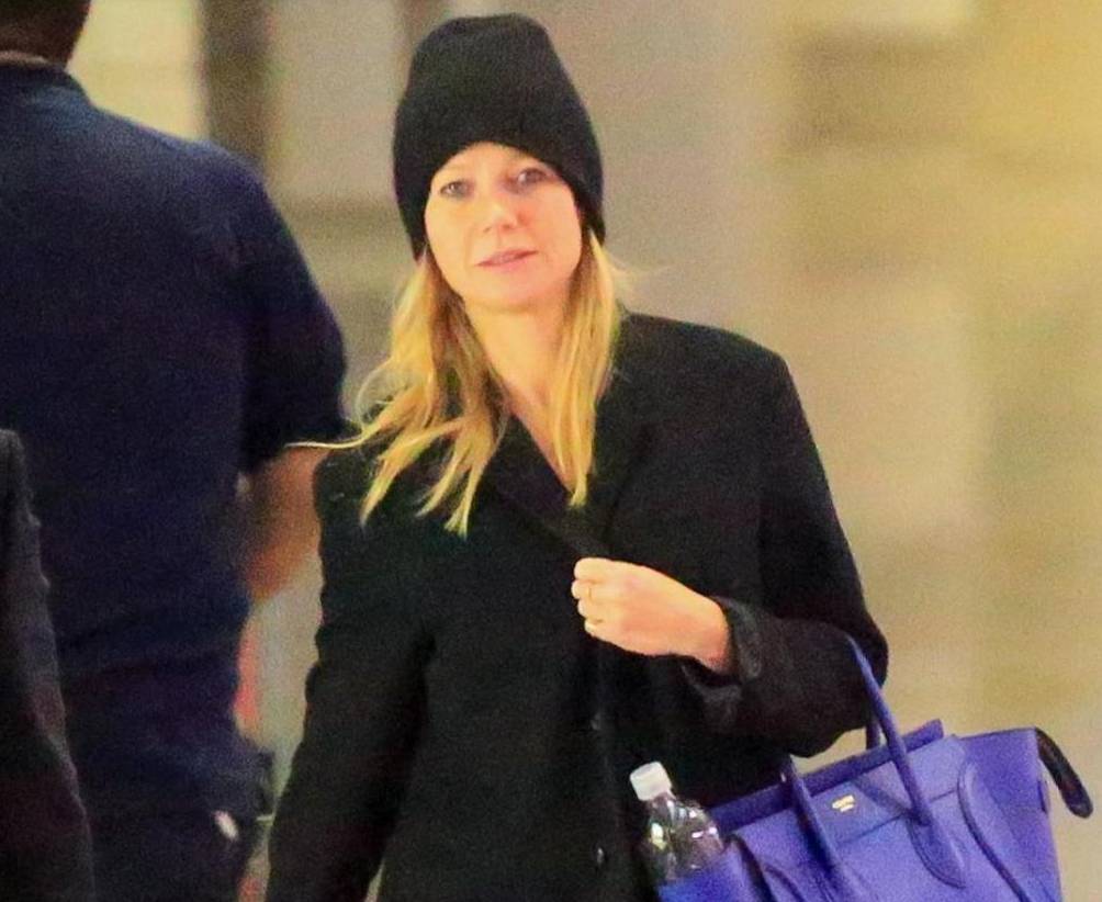 L’attrice ex compagna di Chris Martin dei Coldplay indossa jeans attillati corti, scarpe da ginnastica, un cappottino blu e un cappello di lana con cui prova a coprirsi il volto senza molto successo. La Paltrow è considerata una delle più affascinanti attrici over 40 di Hollywood. Senza trucco però appare irriconoscibile.
