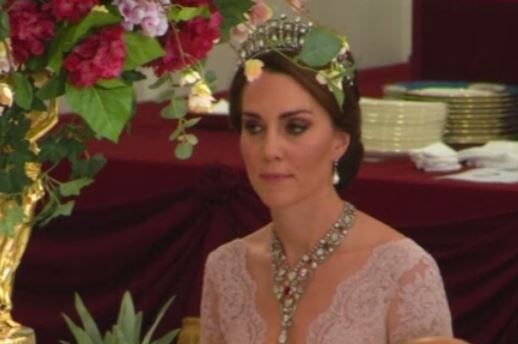 LONDRA – Kate Middleton ha indossato la preziosa collana di rubini e diamanti, che apparteneva alla regina Madre, per la cerimonia organizzata a Buckingham Palace, in occasione della visita di Stato dei reali spagnoli. Probabilmente è una delle collane più vistose con cui si è mostrata in pubblico. La duchessa di Cambridge ha abbinato il gioiello a uno splendido abito rosa con scollo a V firmato Marchesa. Ma soprattutto ha sfoggiato la tiara di diamanti Lover’s Knot, che era la preferita di Lady D, la madre del principe William.