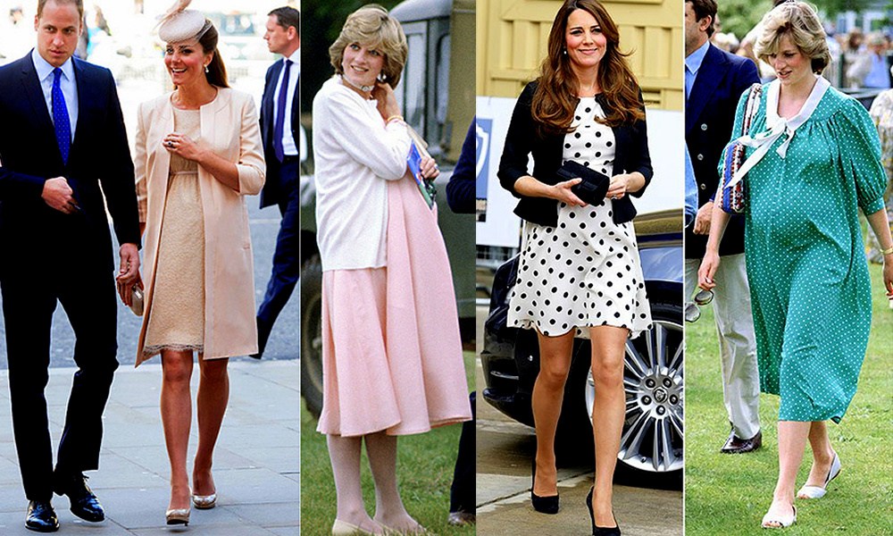 Da quando la Duchessa ha annunciato la sua terza gravidanza, a settembre scorso, spesso i suoi look sono stati messi a paragone con quelli di Lady Diana quando era incinta di William e Harry. Analizzando i vari outfit è possibile notare come molti dei look di Kate siano ispirati proprio a quelli di Lady D.