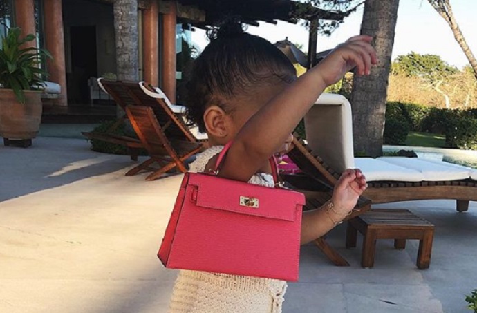 Stormi infatti, malgrado la giovanissima età, va in giro con una borsa Hermès. Mamma Kylie ha condiviso su Instagram una foto della sua bimba nata dall’unione col rapper Travis Scott, che cammina con al braccio una mini Kelly fucsia, abbinata a sandali argento e ad una tutina ricamata all’uncinetto.