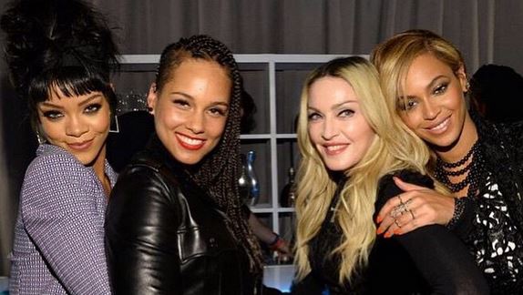 NEW YORK – Rihanna, Madonna, Beyoncé e Alicia Keys: foto di gruppo tra dive. Le cantanti hanno posato insieme per il lancio della prima piattaforma di distribuzione di musica e video musicali online di proprietà degli artisti, che offre servizi in abbonamento. All’evento di presentazione, tenutosi ieri a New York, c’era il gotha della scena musicale Usa. Madonna per la firma del contratto di proprieta si è letteralmente sdraiata sul tavolo.