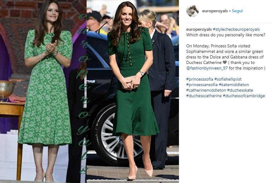 Difficile immaginare che Sofia non fosse consapevole della sua scelta stilistica. Più volte la principessa svedese si è ispirata ai look della moglie di William. Probabilmente lo ha fatto anche in questo caso, o meglio, così ci piace pensare.