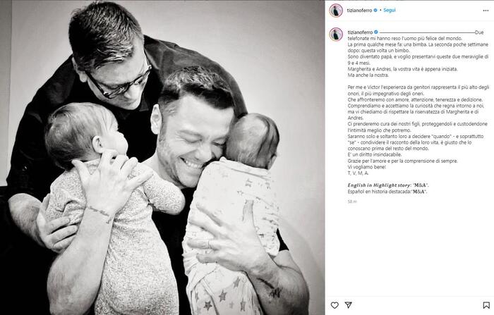 Tiziano Ferro con il marito Victor Allen e i due figli