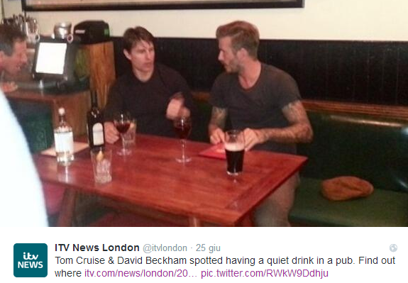 LONDRA – Tom Cruise e David Beckham si sono incontrati in un pub di Londra così come farebbero due amici qualunque.