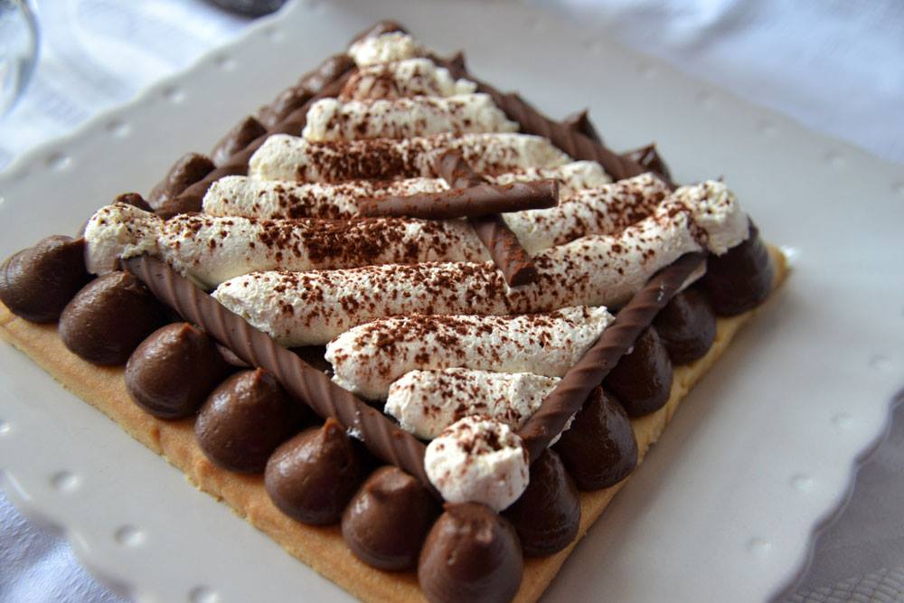 Roma – Sablé con Chantilly al Caramello e Cremoso al Cioccolato.