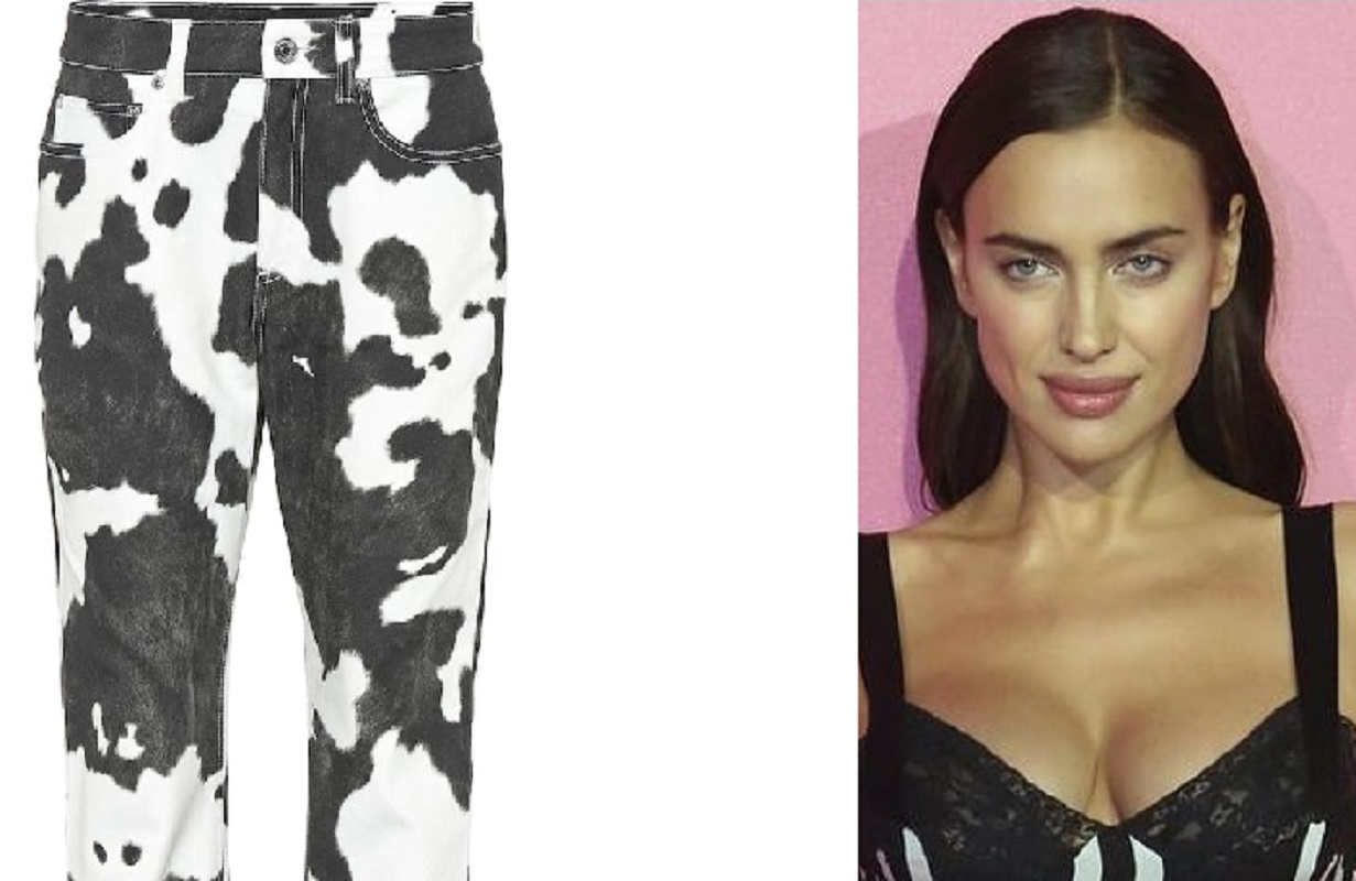 Irina Shayk inaugura la moda dei cow pants tra le celebrities. La modella è stata fotografata nei giorni scorsi con dei pantaloni “muccati” firmati Burberry, maison di cui lei stessa è testimonial. Prezzo: 390 dollari. Un’ottima alternativa è il modello di Cavin Klein, che costa 89 dollari. Oppure quelli firmati Eckhaus Latta a 168 dollari. Dopo il leopardato e lo zebrato, mancava all’appello solo questa fantasia ispirata al mondo animale.