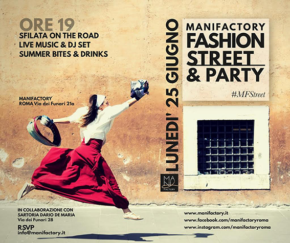 Scostumista-Manifactory Fashion Street 2018 – Il primo centro di coworking nasce a San Francisco nel 2005 con l’idea di combinare l’indipendenza del freelance con la struttura di uno spazio di lavoro condiviso. Da allora centri di coworking si sono diffusi in tutto il mondo, e un fattore importante che guida la domanda di coworking è la parte crescente di lavoratori indipendenti. Designer e creativi di Roma condividono il loro spazio nel cuore del centro storico della capitale, in via dei Funari, zona che da sempre ospita gli artigiani, come testimoniano i nomi delle vicine strade via delle Botteghe Oscure e via dei Falegnami. Qui nasce Manifactory, una nuova galleria d’arte contemporanea, artigianato e design, ideata da Cristiana Del Bello e Paolo Molaioni, con l’obiettivo di promuovere e sviluppare piccole e medie imprese artigianali e designer emergenti, italiani e internazionali. In questo spazio giovani creativi hanno la possibilità di progettare, esporre e vendere i propri prodotti, in un’atmosfera di contatto e contaminazione con altri designer. Lunedi, 25 giugno alle ore 19,00, la galleria Manifactory presenta “Fashion Street” una sfilata itinerante circolare, che partendo da via dei Funari 21A percorrerà le strade del quartiere, fino ad arrivare alle rovine del Portico d’Ottavia per poi tornare in galleria girando intorno alla magnifica fontana delle Tartarughe di Piazza Mattei. Le modelle e i modelli indosseranno le creazioni di designer emergenti, abiti e accessori realizzati in sartorie e laboratori artigianali di alta qualità e cammineranno affiancati da un musicista. Dalle ore 19.00 la sfilata si trasformerà in un’installazione all’interno della galleria, dove sarà possibile osservare da vicino i dettagli di abiti e accessori, bijoux, borse, swimwear, tshirt dipinte a mano,ceramiche e altro.