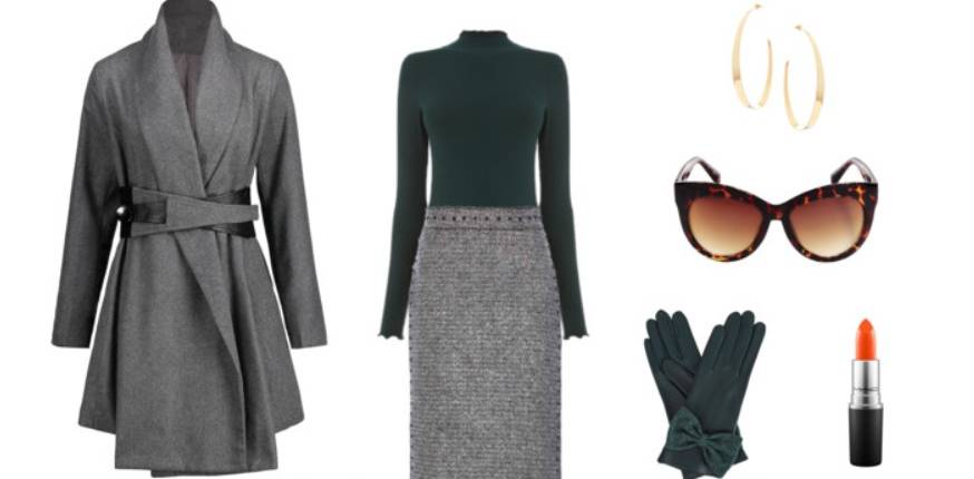 Ieri abbiamo visto un outfit casual-chic formato da un maglioncino rosso a collo alto e pantaloni a palazzo a vita alta. Oggi abbiamo scelto per voi un completo elegante e fashion sui toni del grigio e del verde. Questi due colori stanno benissimo insieme e sono perfetti per creare un look chic e professionale. Inizia scegliendo una maglia verde a costine e a collo alto. Se pensi di sentire freddo puoi mettere sotto un body in cashmere che ti terrà al caldo. La maglia che vi proponiamo si trova online su Warehouse.com e costa solo 26 sterline. Aggiungi una bella gonna grigia a matita, da chiudere sopra la maglia. È perfetta quella in lana di Valentino. Riparati dal freddo scegliendo un caldo cappotto grigio. Quello con cintura in vita e profili in pelle è ora in saldo su Rose gal a 33 dollari. Aggiungi un tronchetto nero con tacco alto e chiusura con i lacci, come quello di Steve Madden, e una borsa grigia ton sur ton con il cappotto come la Saint Laurent. Completa il look con guanti verdi con fiocchetto, occhiali tarte da super diva (li abbiamo trovati su Amazon a soli 8 euro) e orecchini in oro a cerchio. Infine, un tocco di rossetto arancio per un effetto super chic.