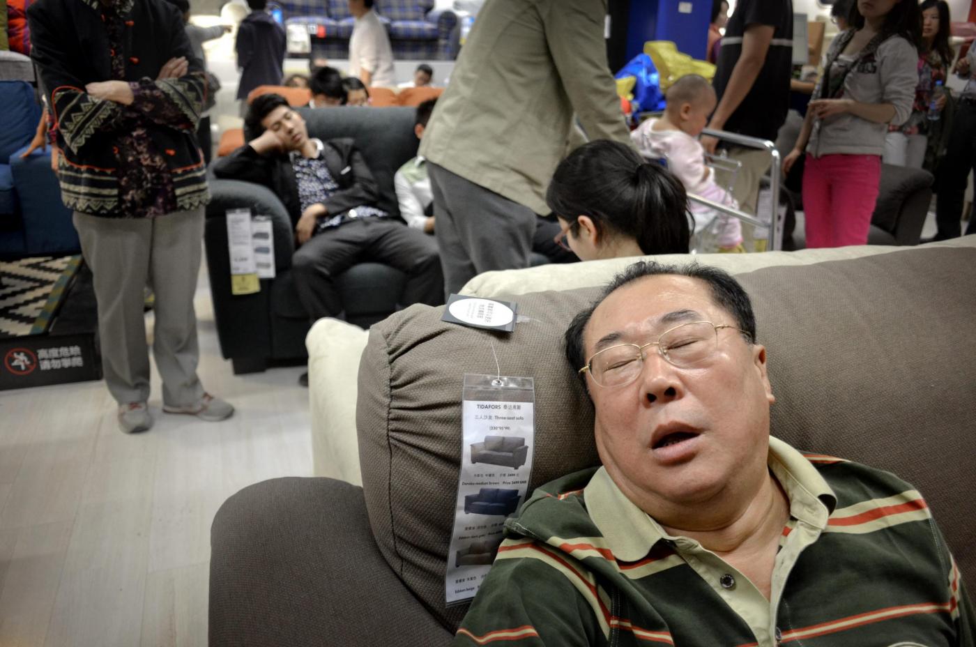 PECHINO – Ai manager del negozio di Ikea di Pechino, il fatto che diversi clienti si riposino schiacciando un pisolino sui letti esposti, non è un problema. Nella frenetica Cina moderna infatti, ogni occasione di svago è buona per recuperare un po’ di sonno: e così, da ormai diversi mesi (queste foto sono state scattate nel settembre 2013) capita di vedere gente che dorme sui letti esposti nella sede locale del supermercato dei mobili a basso prezzo. Per stare più comodo, c’è chi addirittura si toglie le scarpe.