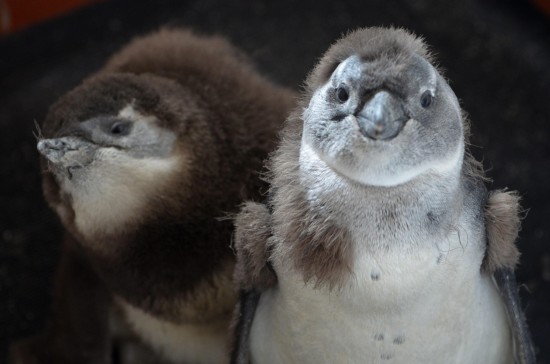 I due cuccioli sono stati abbandonati appena otto settimane dopo che i loro genitori non sono riusciti a dare loro da mangiare correttamente. Si tratta di pinguini africani dai piedi neri in via di estinzione: i custodi hanno dato loro piccole porzioni di pesce due volte al giorno ed hanno monitorato regolarmente i loro progressi.