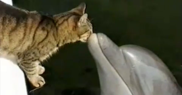 Il video, mostra due mammiferi amici anche se diversi. Un gatto coccolone si fa infatti “accarezzare” da un delfino. Il filmato è stato registrato nel Parco acquatico “Theater of the Sea” nelle isole Keys, al largo della Florida e da quello che si scopre navigando sul web, non è l’unico esempio di amicizia tra un gatto e un delfino.