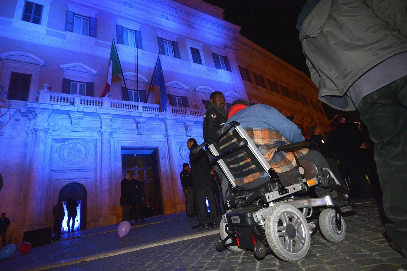 Foto LaPresse Cronaca Roma 01.04.2014 La facciata di Palazzo Montecitorio illuminata in occasione della Giornata Mondiale di sensibilizzazione sull'Autismo; partecipa la presidente della Camera Laura Boldrin, il ministro della salute Beatrice Lorenzin, deputato PD Iliana Argentin