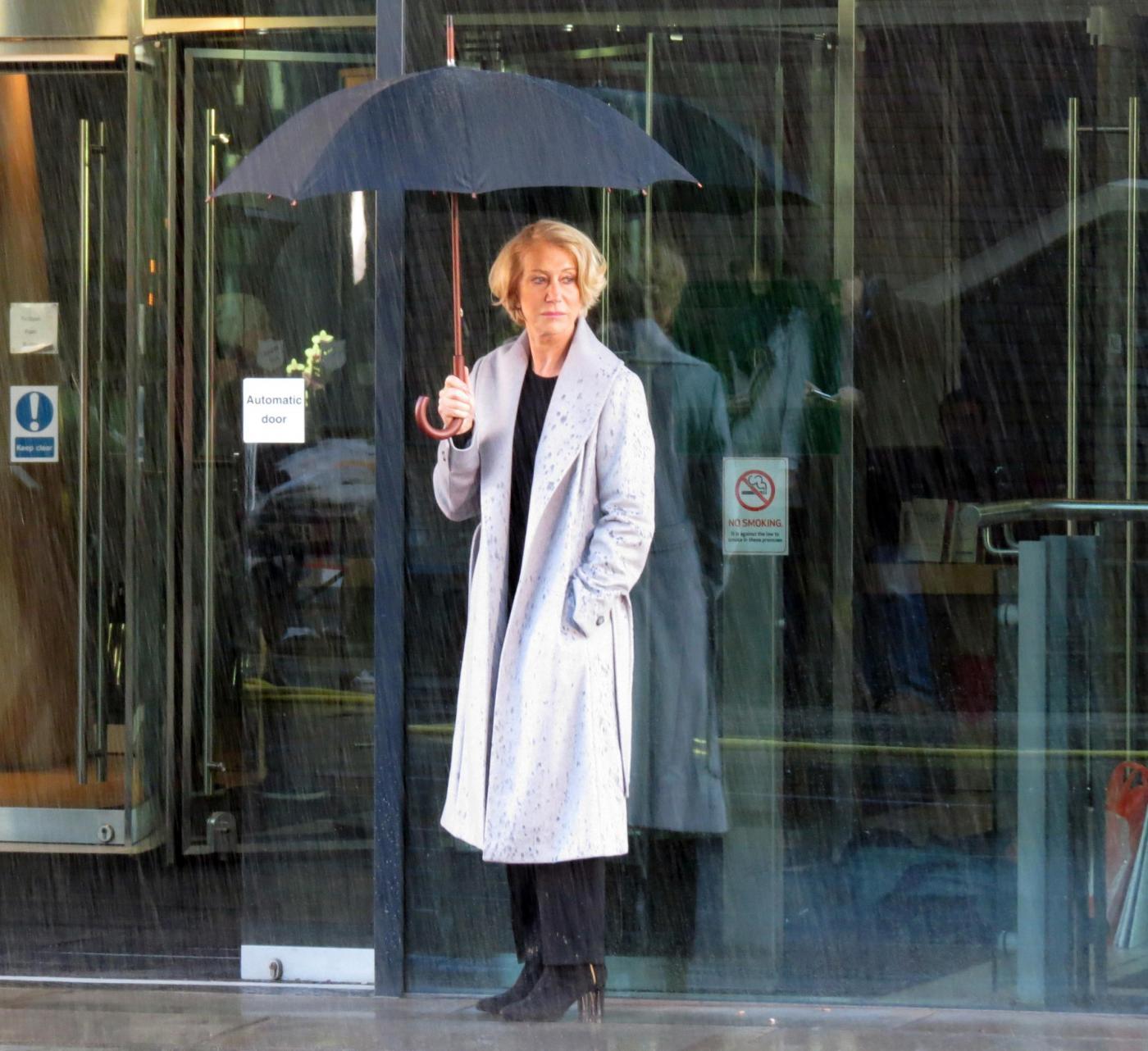 Picture Shows: Helen MirrenDecember 06, 2014Helen Mirren is seen filming a L'Oreal advert on the banks of London's River Thames in London, England.Looking sexy in a black dress and leather jacket; the sixty-nine year old British actress was seen stopping to admire a young male jogger.FameFlynet UK/LaPresseOnly Italy