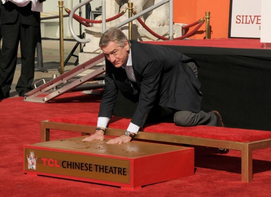 LOS ANGELES – Robert De Niro ha affondato mani e piedi nel cemento per lasciare le sue impronte davanti al Tcl Chinese Theatre di Hollywood, raggiungendo così altre leggende del cinema. “Joe Pesci diceva sempre che sarei finito con i piedi nel cemento. Non credo questo fosse ciò che intendeva”, ha detto alla folla De Niro, che quest’anno ha avuto una nomination come attore non protagonista per ‘Silver Linings Playbook’.