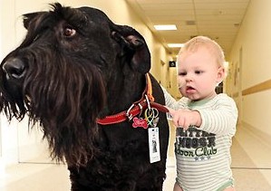 Claire e Zeke sono solo alcuni dei tanti bambini che grazie a questo cane che regolarmente fa il giro nell’ospedale pediatrico, riescono ad alzarsi dal letto trovando una valida distrazione al loro male.