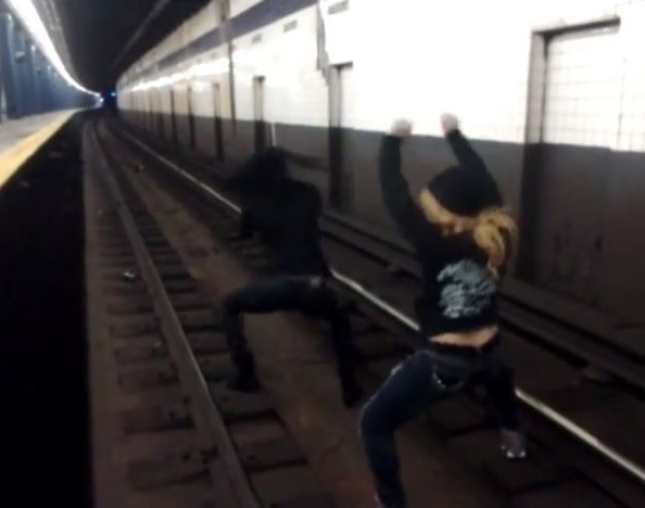 NEW YORK (STATI UNITI) – Due ragazze ballano il ‘twerk’ sulle rotaie della metro di New York prima che passi il treno. Il ballo improvvisato è stato visto migliaia di volte ma ha anche irritato le autorità locali. “In una parola: Idiote,” è stato il commento rilasciato al New York Post da parte di Kevin Ortiz, portavoce della Metropolitan Transportation Authority di New York. Diverse persone hanno perso la vita nella metro della Grande Mela pergesti spesso estremi.