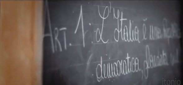 Il filmato comincia citando l’articolo 34 della Costituzione in cui c’è scritto: “La scuola è aperta a tutti…I capaci e meritevoli, anche se privi di mezzi, hanno diritto di raggiungere i gradi più alti degli studi”.