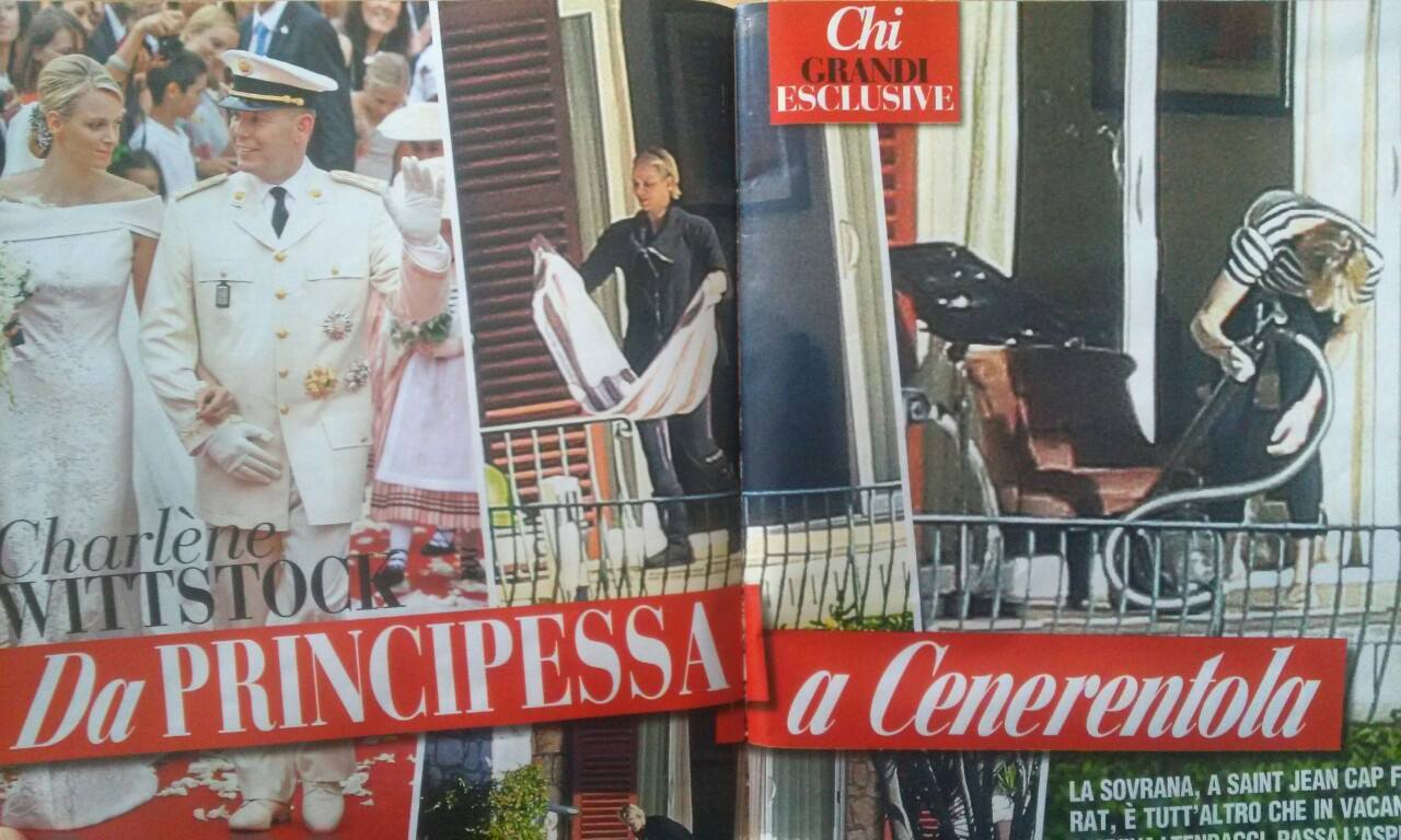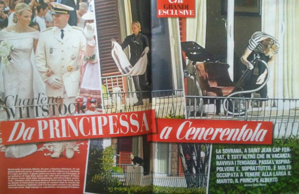 La moglie del principe Alberto, 52 anni, sembra incurante dell’etichetta di palazzo ed è tutta presa a mettere in ordine il terrazzo. “C’est bizarre” (è strano) direbbero i francesi di fronte a queste immagini. Insomma, pur essendo una principessa, Charlene gioca a fare la Cenerentola! Tanto di cappello! La foto apparsa su Chi.