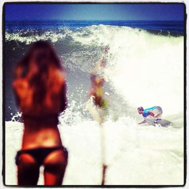 Di Leonardo Pieraccioni nelle foto non vi è traccia, ma Laura non si perde d’animo così mette in mostra le sue doti sportive (e di fisico) comentandosi nel surf. Che dire? 10 e lode alla mamma!
