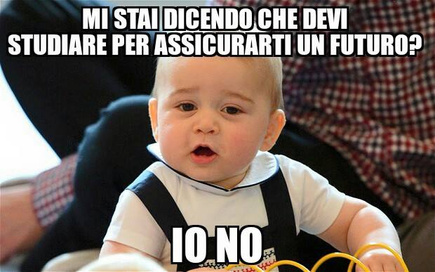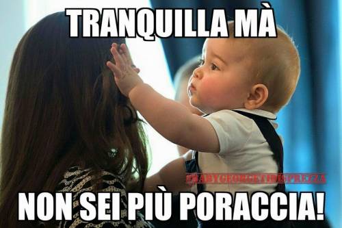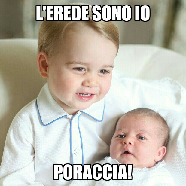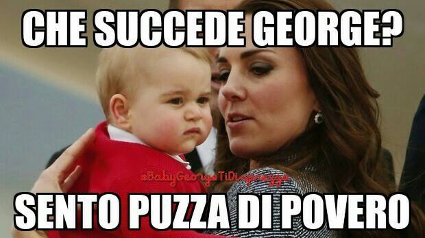 Una pagina che nasce partendo dall’ironia e che, pensandoci bene, tanto lontana dalla realtà non è. Provateci voi a nascere in una famiglia Reale, a essere di sangue blu, a vantare un patrimonio da capogiro, a spostarvi quotidianamente con jet privati e ad avere una schiera di maggiordomi pronti a servirvi. La puzza sotto al naso è inevitabile e l’arroganza e la strafottenza… è proprio dietro l’angolo. Bravo George, stai crescendo bene.