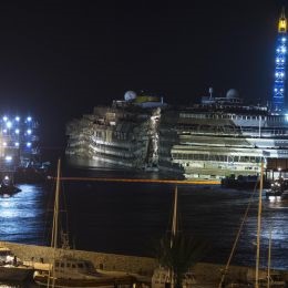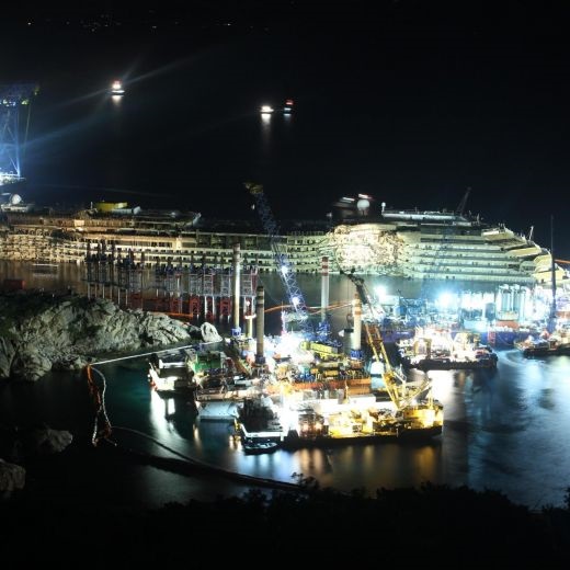 ISOLA DEL GIGLIO – La Costa Concordia è tornata in posizione verticale. Missione compiuta, dopo 19 ore l’operazione Concordia è terminata e la rotazione è riuscita: la nave è di nuovo in posizione verticale, appoggiandosi in sicurezza sul falso fondale appositamente creato, a circa 30 metri di profondità. Le operazioni di parbuckling sono terminate intorno alle 4 di mattina con successo.
