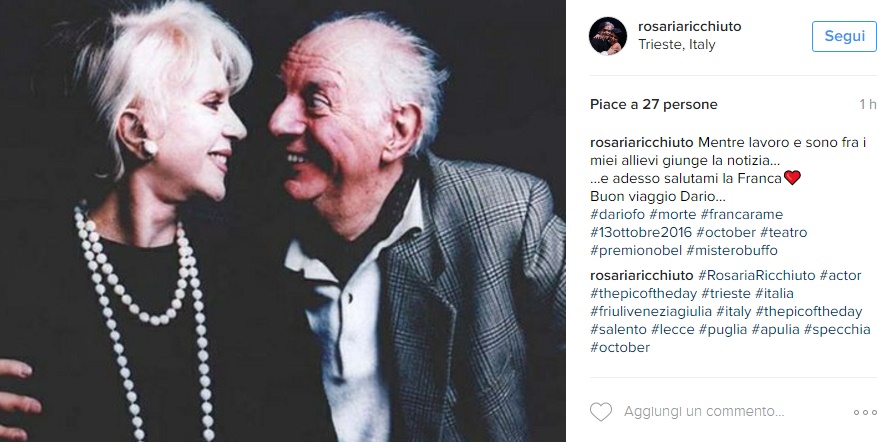 Con la morte di Dario Fo l’Italia perde definitivamente una fonte importante di arte e cultura. Una vera “coppia da Nobel” (nonostante l’ambito premio lo abbia vinto solo lui, alla Letteratura, nel 1997).