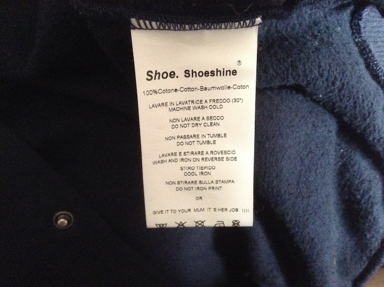 Sull’etichetta di una felpa di un noto marchio per adolescenti, al termine dei consigli istituzionali per il lavaggio scritti in italiano e inglese – lavatrice a freddo 30°, non lavare a secco, non centrifugare, lavare e stirare a rovescio – compare questa frase: “Give it to your mum, it’s her job”. Tradotto in italiano vuol dire: “Dalla tua mamma, è il suo lavoro”. Una frase che non è passata inosservata e che, da alcune donne, è stata vista come maschilista.