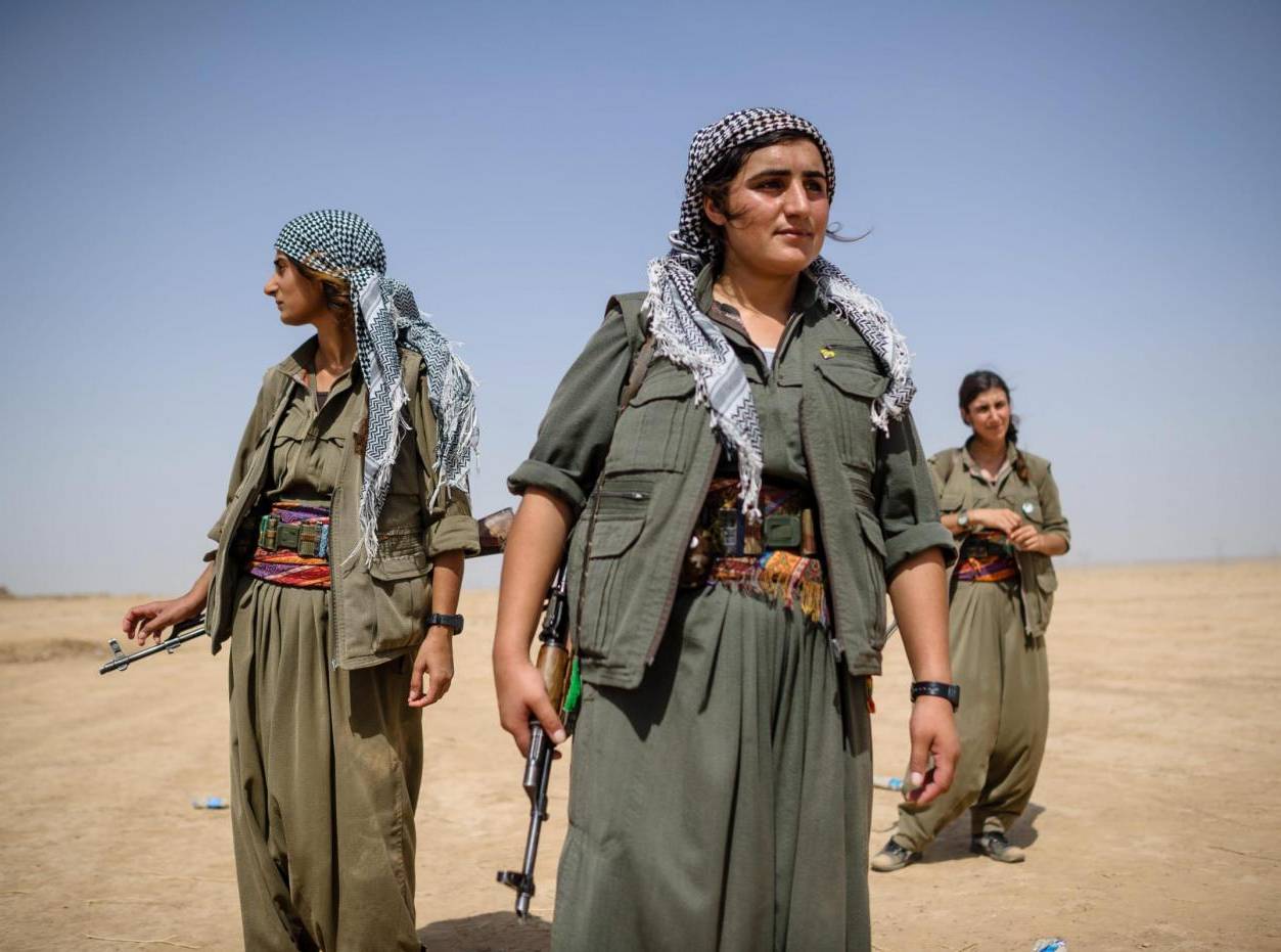 Christophe Petit Tesson/MAXPPP - 26/09/2014 ; TAZA ; IRAQ - Des femmes combattantes kurdes du PKK s'entraine dans un camp militaire proche du front au sud de Kirkouk. L'organisation independentiste Kurde de Turquie participe au cote des peshmerga irakien au combat contre l'etat islamique. PKK females rebels in a camp in Taza, south of Kirkuk on September 26, 2014. PKK participates at the fight against islamic state with the peshmergas. 25 anni della lotta del PKK LaPresse -- Only Italy