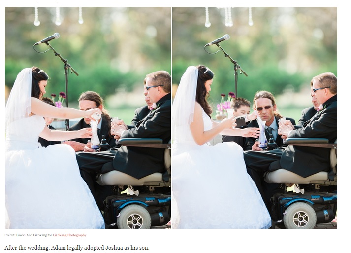 “Voglio vedere il tuo viso fino all’ultimo dei miei giorni, baciare le tue labbra, dormire al tuo fianco. Capisco se non vuoi farti carico di questo peso. Ma se mi vuoi, io desidero sposarti”, così Adam, sconvolto quanto rassegnato, si rivolge alla sua Holly. Lei accetta senza esitazione, si fidanzano ufficialmente nell’ottobre del 2011. Nel 2012 le nozze. Adam adotta anche Joshua, il figlio della donna.