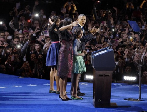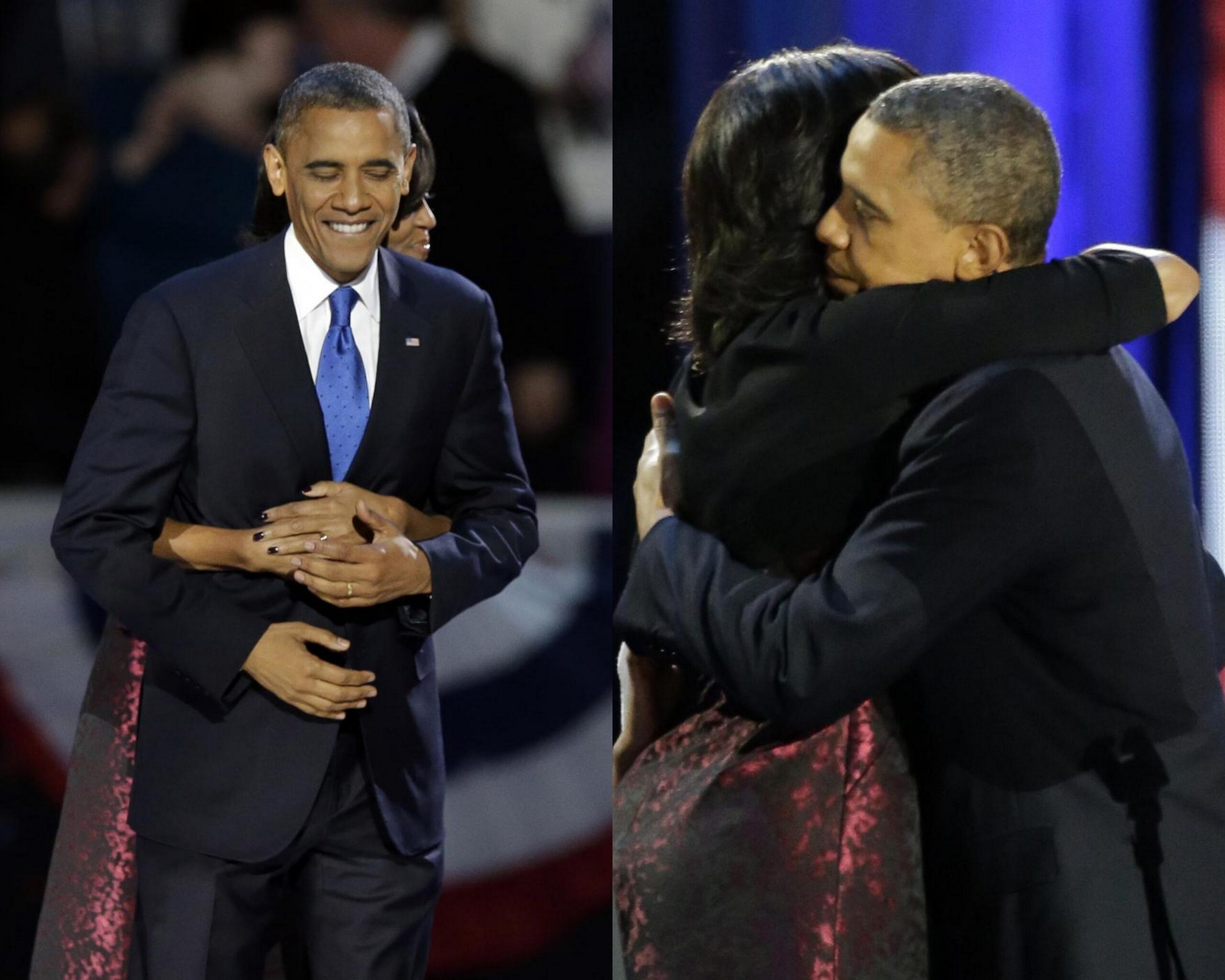 Il legame che c’è tra Obama e Michelle è già noto ai più. Da sempre la famiglia Obama è apparsa molto legata e felice, e proprio con la moglie e con le due amatissime figlie Sasha e Malia, il presidente Obama è salito sul palco di Chicago per il discorso sulla sua nuova vittoria.
