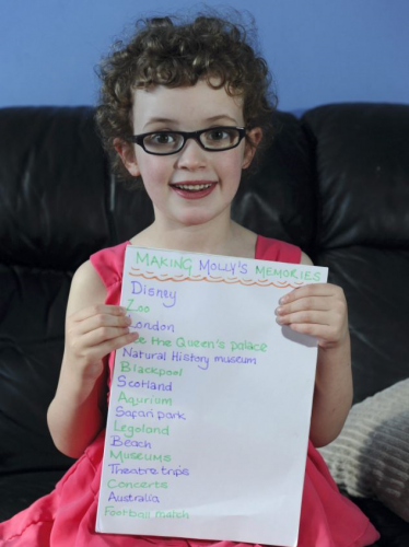 Così i genitori ce la stanno mettendo tutta per esaudire il maggior numero di desideri di Molly prima che perda la vista e hanno anche aperto una piccola raccolta fondi per ricevere un piccolo aiuto economico. Il desiderio più grande di Molly, quello che è in cima alla lista ma che ancora non sono riusciti ad esaudire, è andare a Disneyland Paris. I genitori hanno detto: