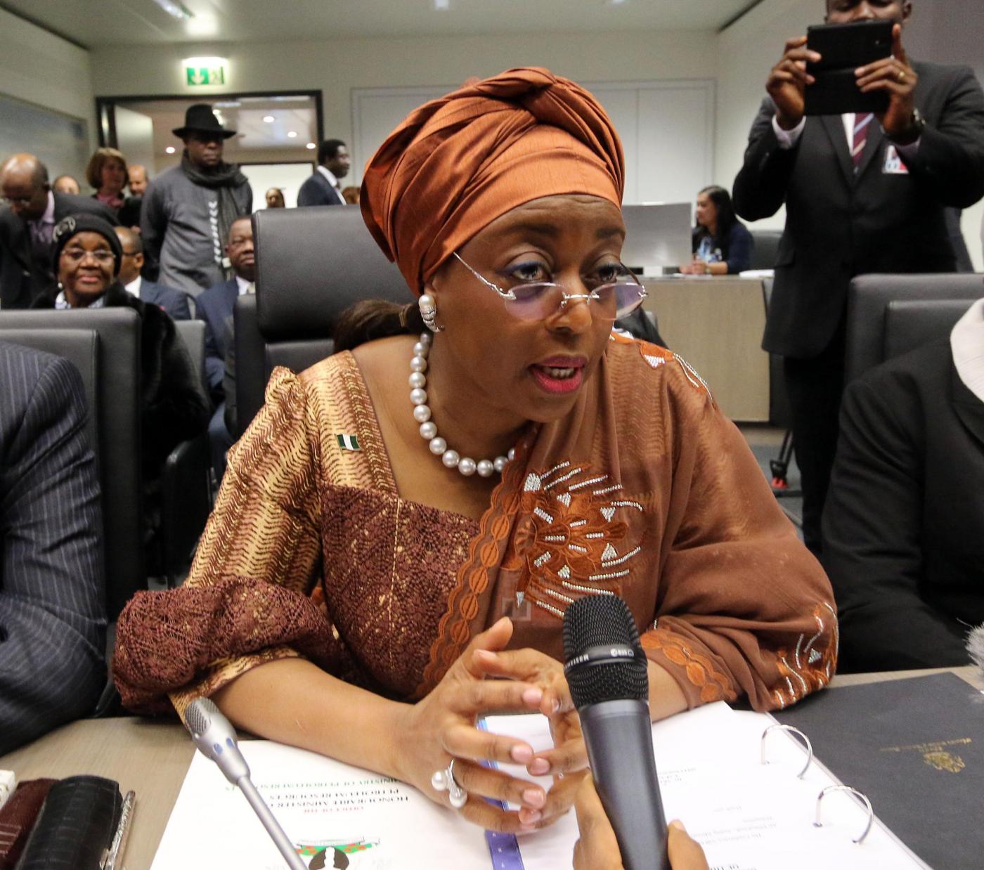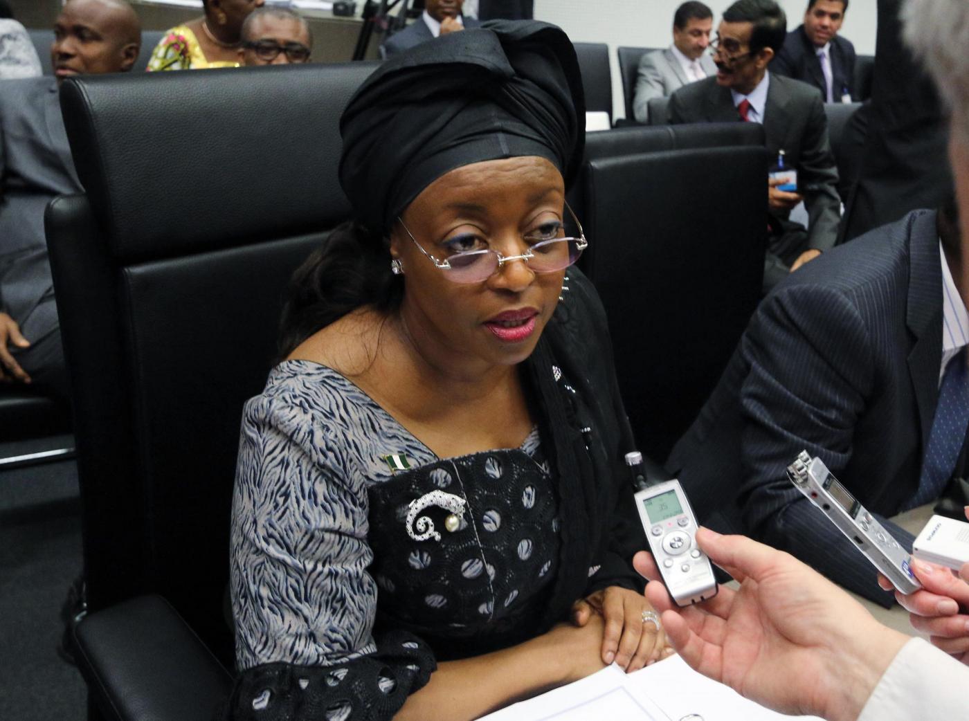 Nigeria's Diezani Alison-Madueke, Minister of Petroleum Resources and Alternate President of the OPEC Conference, speaks to journalists prior to the start of a meeting of the Organization of the Petroleum Exporting Countries, OPEC, at their headquarters in Vienna, Austria, Wednesday, June 11, 2014. OPEC oil ministers are heading into a meeting with apparent agreement to keep unchanged their output target of 30 million barrels a day. (AP Photo/Ronald Zak)