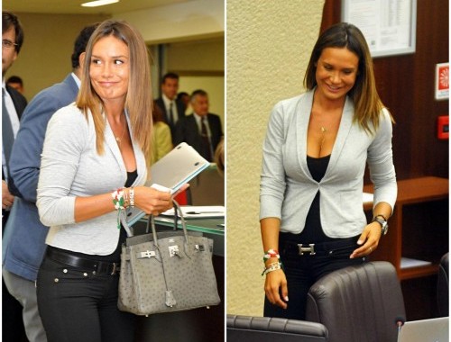 Passi la personale idea secondo cui un decoltè prosperoso strizzato in un top scollato e giacca “micro size” (ma lo sa la fashion consigliera che quest’anno va di moda l’over size?) non sia proprio di buon gusto (in un Consiglio Regionale, ma in qualsiasi altro luogo). Passi il bracciale in bella vista con bandiera italiana che sta a significare che, comunque, lei al suo paese ci tiene. Passi anche la cintura che agli occhi dei più passerà inosservata ma non a quelli degli esperti che identificano subito una costosissima cintura della Maison di Moda Hermès, il marchio dell’eleganza (?) per antonomasia dal valore di Euro 300, centesimo più, centesimo meno.