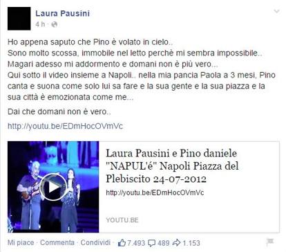 Tanti i messaggi di addio sul web da parte di colleghi e amici: oltre a Ramazzotti hanno affidato il loro ricordo a Twitter anche Laura Pausini e Fiorella Mannoia. “Ho appena saputo che Pino è volato in cielo… Sono molto scossa, immobile nel letto… ” scrive la Pausini. “Pino Daniele ci ha lasciato. Un dolore immenso, sono attonita, non trovo altre parole”, è il pensiero della Mannoia.