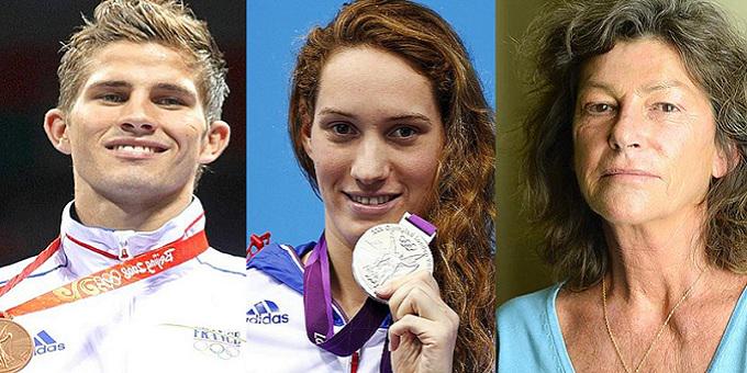 Il pugile Alexis Vastine, 28 anni, la nuotatrice Camille Muffat, 25 anni, e la navigatrice Florence Arthaud, 57 anniIl pugile Alexis Vastine, 28 anni, la nuotatrice Camille Muffat, 25 anni, e la navigatrice Florence Arthaud, 57 anni