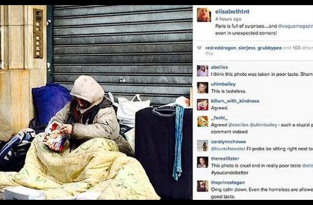 PARIGI – Style editor di Vogue pubblica su Instagram la foto di una senzatetto che legge la famosa rivista: scatta la polemica. “Una foto di malo gusto” commenta il popolo del web. La principessa tedesca Elisabeth von Thurn und Taxis, 32enne style editor di Vogue, è incappata sabato scorso in una caduta di stile che non ha nulla di regale e che l’ha messa sotto il fuoco incrociato delle critiche di mezzo mondo. Le accuse sono state scatenate da una foto che ha postato su Instagram: una donna, una senzatetto, ritratta mentre legge Vogue.