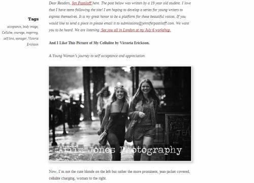 La foto apparsa sul blog di Victoria, che l'ha resa fiera della sua celluliteLa foto apparsa sul blog di Victoria, che l'ha resa fiera della sua cellulite