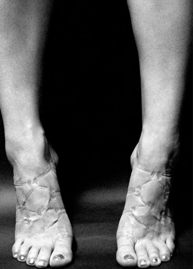 Nelle immagini di Bartles si vedono corpi di donne segnati da reggiseni, slip stretti, sandali con lacci. Tutte rigorosamente in bianco e nero.L’effetto ottico è notevole e fa quasi impressione quella pelle rigata e pressata dai vestiti indossati.
