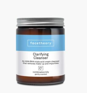 Innanzitutto, una parola sulla corretta esfoliazione del viso. Gli esfolianti fisici (quelli che al tocco sno sabbiosi o granulosi) possono essere un po’ invasivi sulla pelle del viso, in particolare intorno agli occhi. Gli esfolianti chimici, invece, offrono benefici per la pelle attraverso gli acidi lattico, glicolico e salicilico. In genere, si applicano esfolianti chimici dopo la detersione. Ma con il popolarissimo Detergente esfoliante C2 di Facetheory, l’esfoliazione è incorporata nella formula. Così puoi ottenere una pelle luminosa e detersa in un solo passaggio.