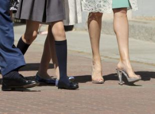 The shoes of Spain's Queen Letizia are seen upon her arrival at an official welcoming ceremony for Peru's President Ollanta Humala at Madrid's El Pardo Palace, Spain, July 7, 2015. REUTERS/Juan Medina