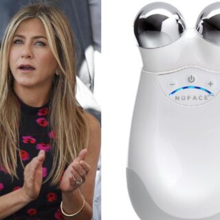 Tra gli strumenti non propriamente economici che usa c’è il trainer facciale NuFace Trinity (prezzo su Amazon 388,70 euro più spese di spedizione).