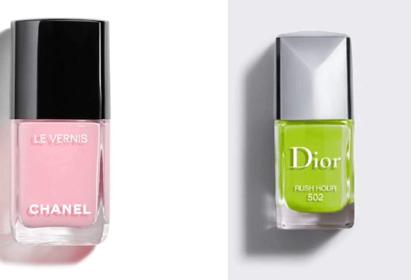 Per il rosa consigliamo Le Vernis de Chanel a lunga tenuta. Per il verde chiaro, la versione Dior, dove troverete anche il giallo, così come il grigio. Per il viola chiaro, lo smalto Douglas.